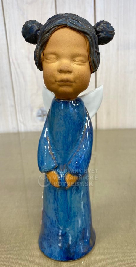 Jedinečná keramická soška anjel Baby z keramickej výroby Maľovaný svet vyrobená z kvalitnej hliny vypaľovanej pri vysokej teplote, vďaka čomu je výrobok pevnejší a odolnejší. Na povrchovú úpravu anjela boli použité kvalitné glazúry značky Botz alebo TerraColor.