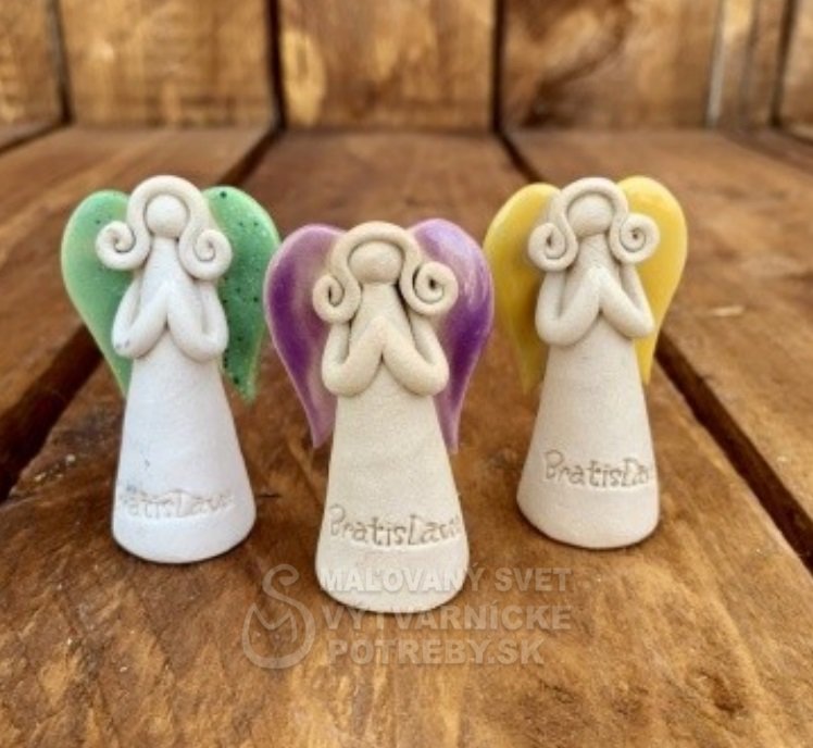 Jedinečná keramická soška anjel Cukrík z keramickej výroby Maľovaný svet vyrobená z kvalitnej hliny vypaľovanej pri vysokej teplote, vďaka čomu je výrobok pevnejší a odolnejší. Na povrchovú úpravu anjela boli použité kvalitné glazúry značky Botz alebo TerraColor.