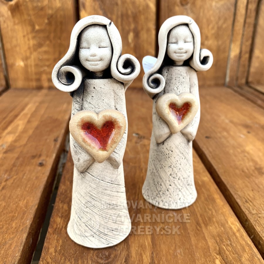 Jedinečná keramická soška anjel Mária z keramickej výroby Maľovaný svet vyrobená z kvalitnej hliny vypaľovanej pri vysokej teplote, vďaka čomu je výrobok pevnejší a odolnejší. Na povrchovú úpravu anjela boli použité kvalitné glazúry značky Botz alebo TerraColor.