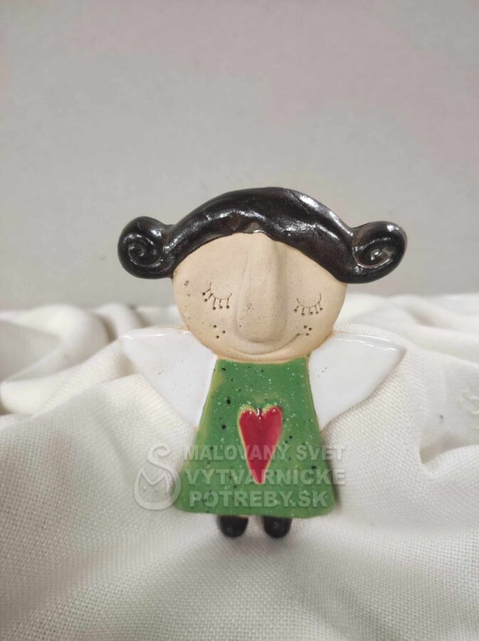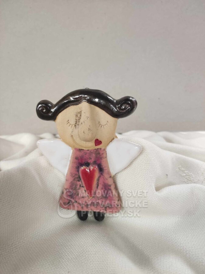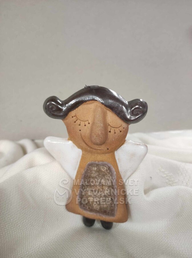 Jedinečná keramická soška anjel Puk z keramickej výroby Maľovaný svet vyrobená z kvalitnej hliny vypaľovanej pri vysokej teplote, vďaka čomu je výrobok pevnejší a odolnejší. Na povrchovú úpravu anjela boli použité kvalitné glazúry značky Botz alebo TerraColor.