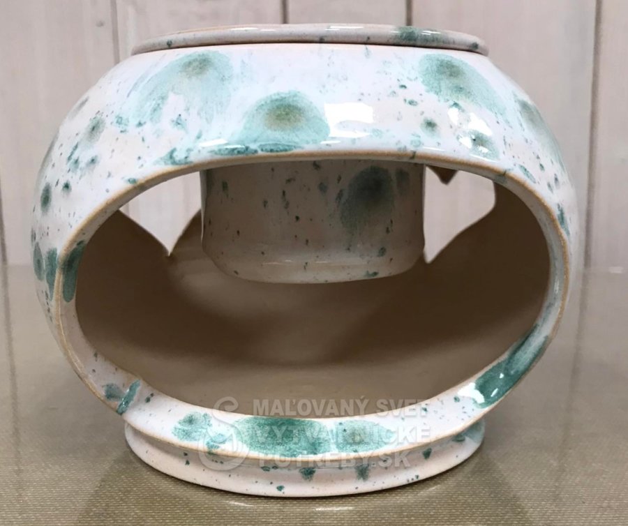 Jedinečná keramická aromalampa z keramickej výroby Maľovaný svet vyrobená z kvalitnej hliny vypaľovanej pri vysokej teplote, vďaka čomu je výrobok pevnejší a odolnejší. Na povrchovú úpravu aromalampy boli použité kvalitné glazúry značky Botz alebo TerraColor.