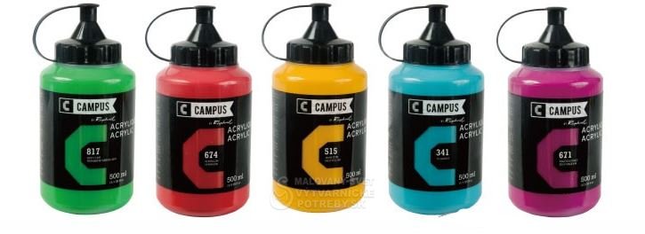 Netoxická akrylová farba značky Campus je založená na vodnej báze. Akrylová farba Campus je vhodná na maľovanie materiálov ako sú: drevo, plast, sádra a iné. Akrylová farba Campus je svetlostála s vysokým obsahom pigmentov, vďaka čomu má veľmi dobré krycie vlastnosti.