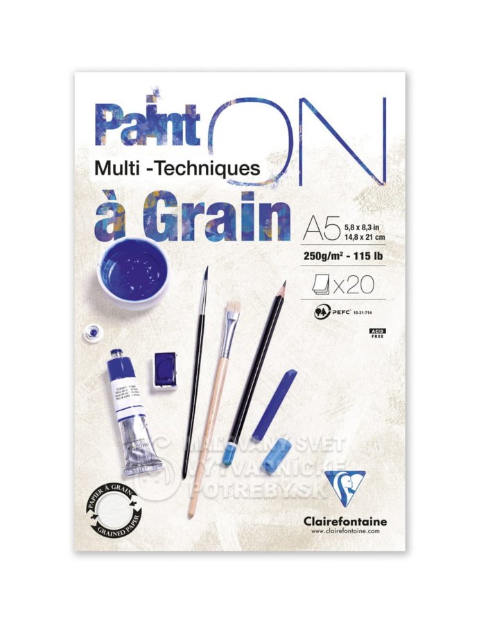 Blok s 20 listami veľmi bieleho, papiera vysokej kvality s plošnou hmotnosťou 250 g/m2. Na jednej strane je papier hladký, na druhej strane má hrubo zrnitú štruktúru.Je bez kyselín, z hľadiska pH neutrálny, má dlhú životnosť. Vyrobený zo 100% celulózy. Blok je lepený na krátkej strane.