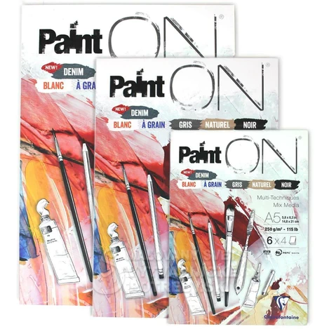 Univerzálny mix médií blok obsahujúci 6 druhov farieb série Paint ON (Universal Blanc, a Grain, Naturel, Gris, Naturel, Noir a nové: Denim ).