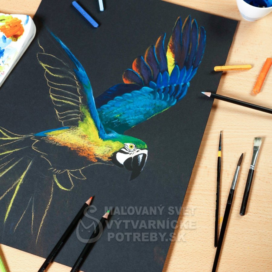 Je to vynikajúca ponuka pre kresličov a maliarov rôznych techník. Farebný papier, s hmotnosťou 250 g je skvelým substrátom pre gélové perá, kriedy, pastely a farby.