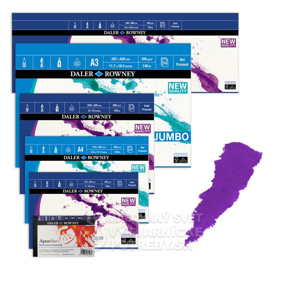 Aquafine Texture hrubého papiera s vysokou absorpciou vody s čírou textúrou a hmotnosťou 300 g / m². Vyrobené z panenskej drevnej buničiny, pufrovanej uhličitanom vápenatým, bez obsahu kyselín, odolné voči zafarbeniu a s dlhou trvanlivosťou. Neobsahuje bielidlá, pomocné linky z jeho povrchu ľahko zotriete a umožňuje použitie maskovacej tekutiny. Nedeformuje sa, netreba ho naťahovať ani lepiť. Odporúča sa pre amatérov, študentov a profesionálov