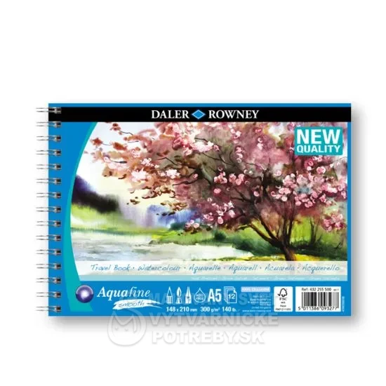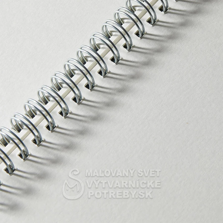Akvarelový skicár s vysokou absorpciou vody s čírou textúrou a hmotnosťou 300 g / m². Vyrobené z panenskej drevnej buničiny, pufrovanej uhličitanom vápenatým, bez obsahu kyselín, odolné voči zafarbeniu a s dlhou trvanlivosťou.