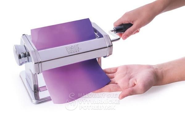 Univerzálny ručný stroj na valcovanie a tvarovanie polymérových a samotvrdnúcich ílov Das, Darwi, Cernit, Pardo. Stroj je vyrobený z nehrdzavejúcej ocele, vybavený rukoväťou na pripevnenie k doske stola.