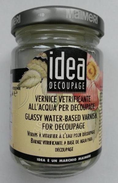 Idea Decoupage glassy decoupage lak je ochranný vrchný lak na vodnej báze. Ideálne pre techniky decoupage a na zakrytie rôznych dekoratívnych prác. Sklovitý lak vytvára mimoriadne odolný superlesklý film, ktorý chráni pred atmosférickým a mechanickým poškodením.