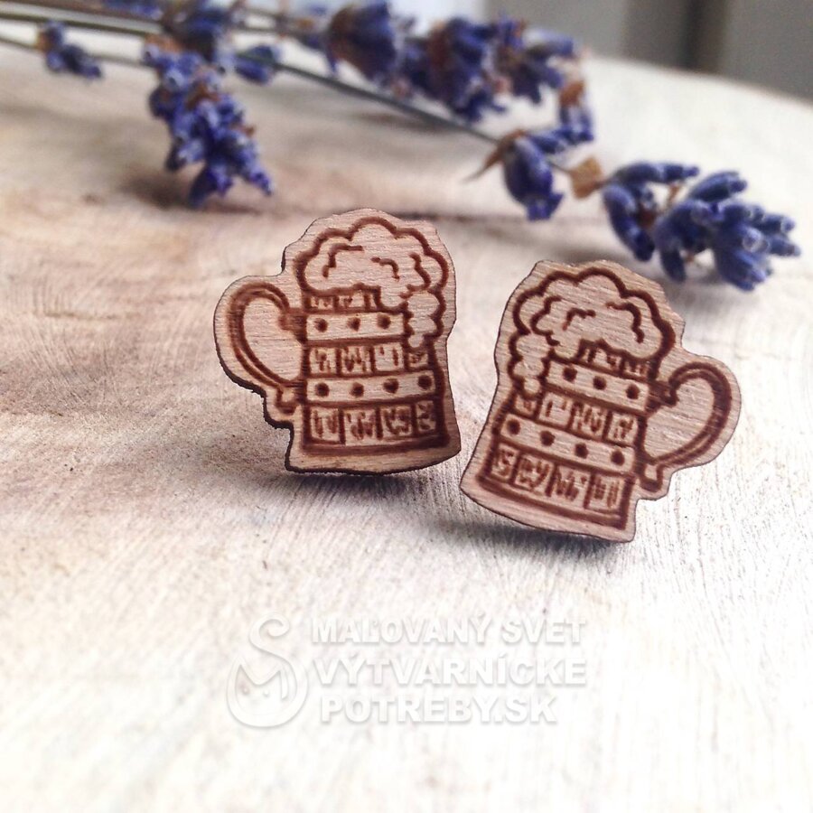 Drevené náušnice - Krígeľ s pivom