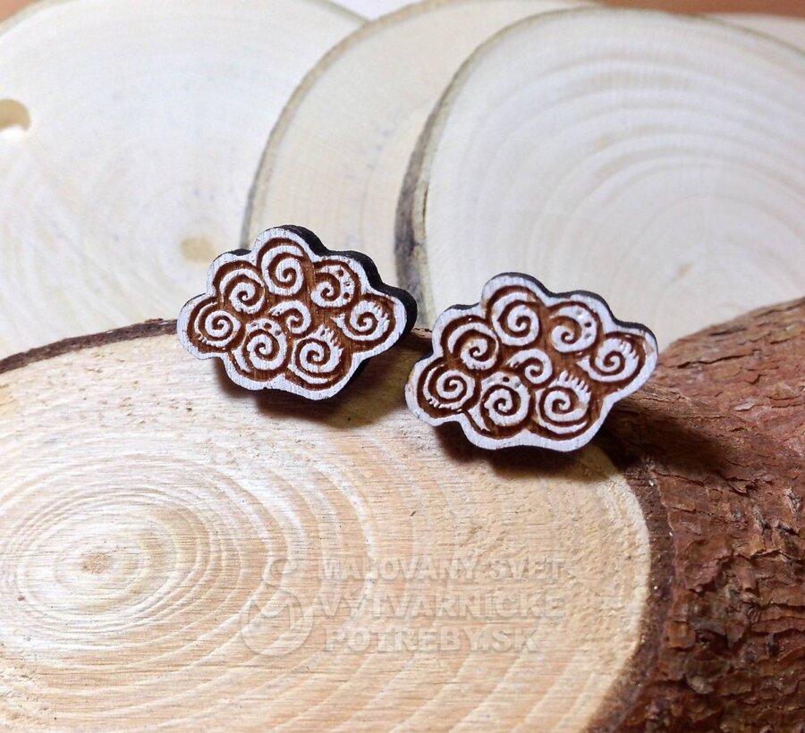Napichovacie náušničky z Oravskej laserovne. Náušničky  v originálnom dizajne sú vyrobené z dreva technikou vyrezávania laserom. Prípadné farebné prevedenia náušníc sú ručne maľované.