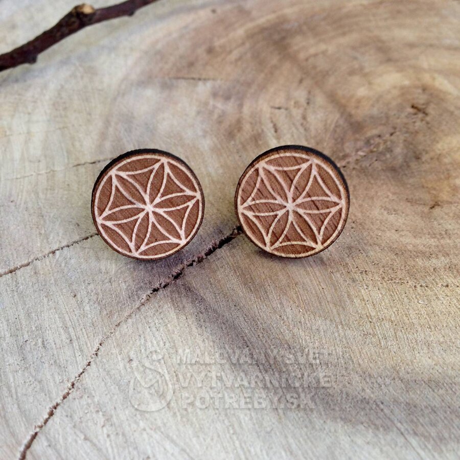 Napichovacie náušničky z Oravskej laserovne. Náušničky  v originálnom dizajne sú vyrobené z dreva technikou vyrezávania laserom. Prípadné farebné prevedenia náušníc sú ručne maľované.