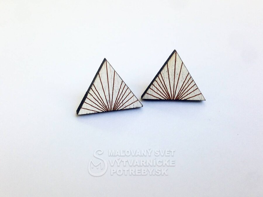 Drevené náušnice - Trojuholník s priamkami biely