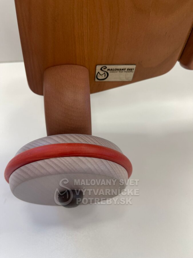 Drevené kolesá osadené kovovými ložiskami s gumenou pneumatikou – hladká a plynulá jazda.