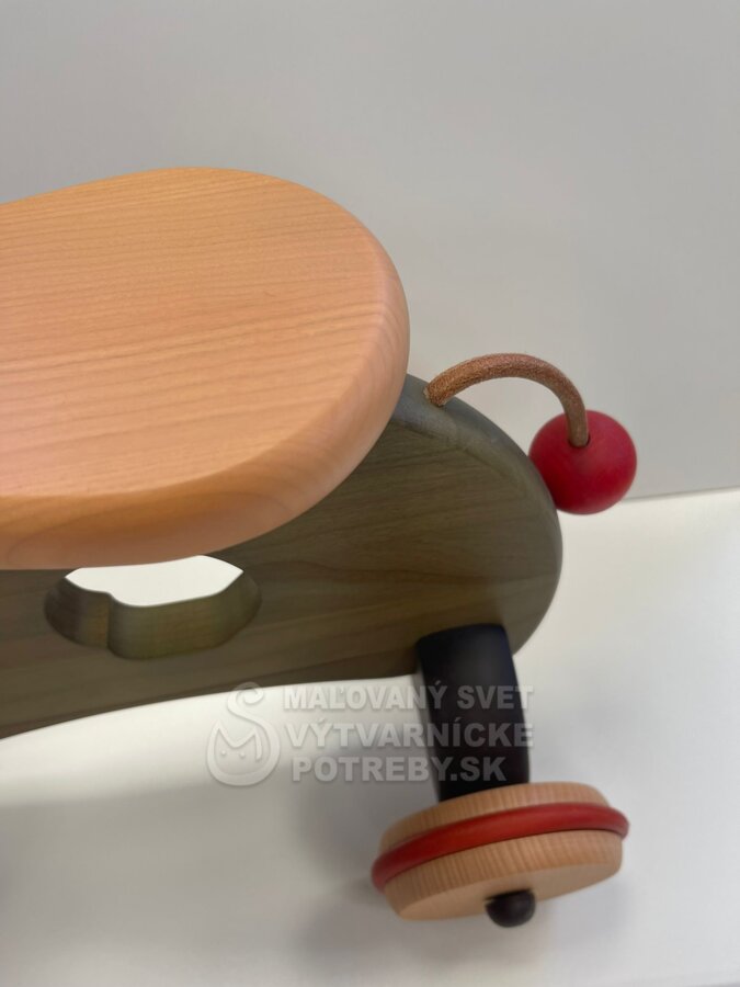 Je ručne vyrobené z kvalitného bukového dreva a povrchovo upravené bezpečnými, netoxickými farbami. Vďaka stabilným kolieskam a ergonomickému sedadlu poskytuje pohodlnú a bezpečnú jazdu pre najmenších prieskumníkov.
