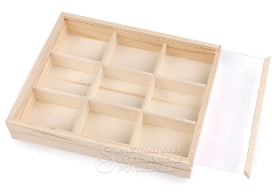 Drevená krabička s priehľadným zasúvacím vekom sa hodí na uloženie drobného materiálu na vaše kreatívne tvorenie. Hodí sa na korálky, gombíky, bižutérny materiál a pod. Nájde využitie aj ako organizér v domácnosti, do skrine, šuplíka a pod. Zmestia sa do nej náramky, gumičky, sponky a pod. Je obľúbená aj zberateľmi drahých kameňov a minerálov.