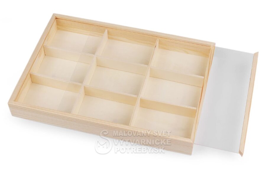 Drevená krabička so zasúvacím priehľadným vekom sa hodí na uloženie drobného materiálu na vaše kreatívne tvorenie. Hodí sa na korálky, gombíky, bižutérny materiál a pod. Nájde využitie aj ako organizér v domácnosti, do skrine, šuplíka a pod. Zmestia sa do nej náramky, gumičky, sponky a pod. Je obľúbená aj zberateľmi drahých kameňov a minerálov.