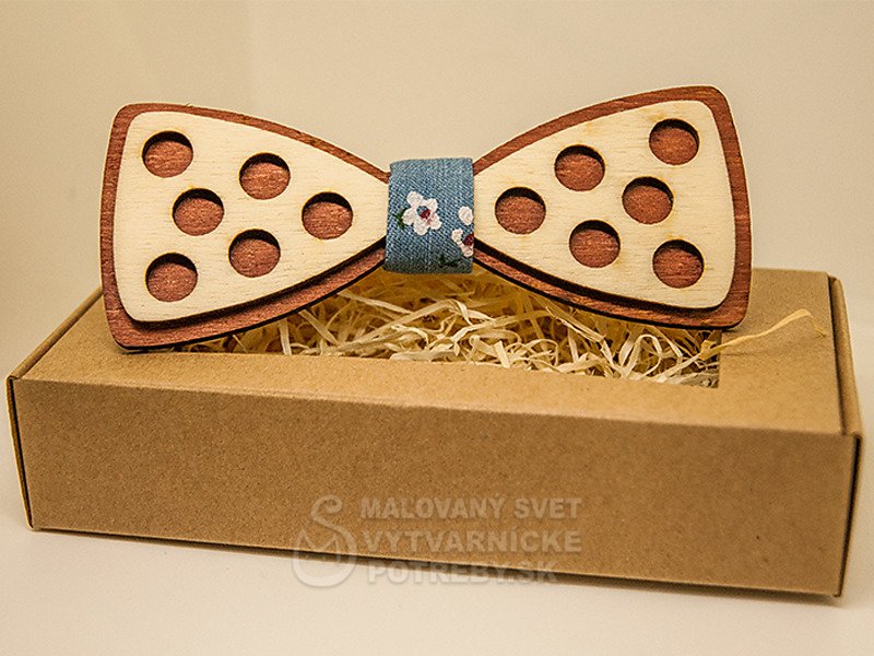 Drevený motýlik v originálnom dizajne. Vhodný ako darček pre výnimočného muža, ktorý má rád eleganciu a štýl. Motýlik je vyrobený z dreva kombináciou viacerých techník. Je ručňe morený, lepený a brúsený.