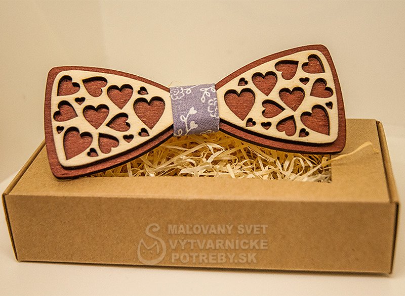 Drevený motýlik v originálnom dizajne. Vhodný ako darček pre výnimočného muža, ktorý má rád eleganciu a štýl. Motýlik je vyrobený z dreva kombináciou viacerých techník. Je ručňe morený, lepený a brúsený.