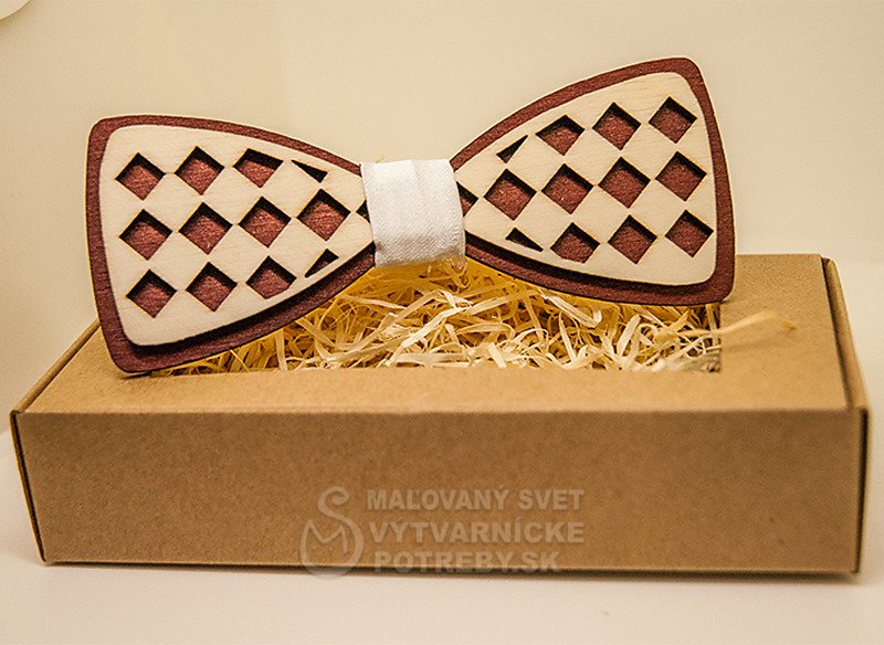 Drevený motýlik v originálnom dizajne. Vhodný ako darček pre výnimočného muža, ktorý má rád eleganciu a štýl. Motýlik je vyrobený z dreva kombináciou viacerých techník. Je ručňe morený, lepený a brúsený.