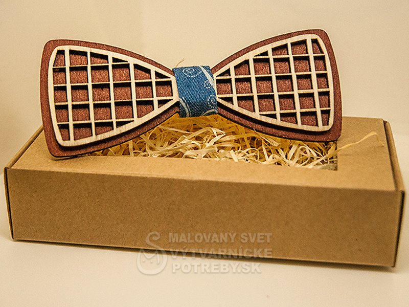 Drevený motýlik v originálnom dizajne. Vhodný ako darček pre výnimočného muža, ktorý má rád eleganciu a štýl. Motýlik je vyrobený z dreva kombináciou viacerých techník. Je ručňe morený, lepený a brúsený.