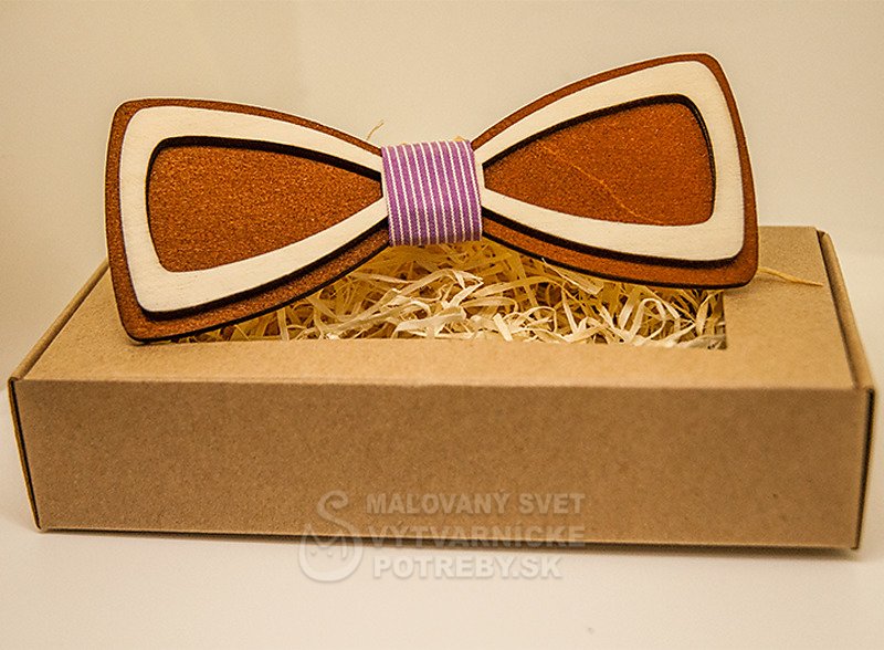 Drevený motýlik v originálnom dizajne. Vhodný ako darček pre výnimočného muža, ktorý má rád eleganciu a štýl. Motýlik je vyrobený z dreva kombináciou viacerých techník. Je ručňe morený, lepený a brúsený.
