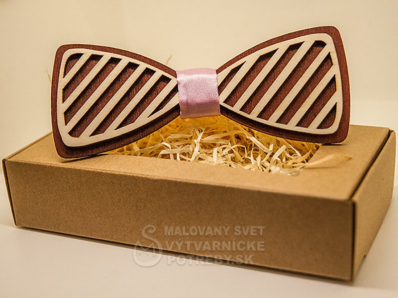 Drevený motýlik v originálnom dizajne. Vhodný ako darček pre výnimočného muža, ktorý má rád eleganciu a štýl. Motýlik je vyrobený z dreva kombináciou viacerých techník. Je ručňe morený, lepený a brúsený.