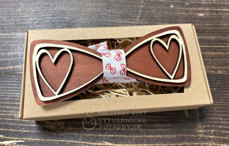 Drevený motýlik v originálnom dizajne. Vhodný ako darček pre výnimočného muža, ktorý má rád eleganciu a štýl. Motýlik je vyrobený z dreva kombináciou viacerých techník. Je ručňe morený, lepený a brúsený.