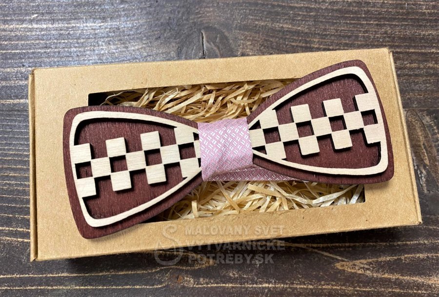 Drevený motýlik v originálnom dizajne. Vhodný ako darček pre výnimočného muža, ktorý má rád eleganciu a štýl. Motýlik je vyrobený z dreva kombináciou viacerých techník. Je ručňe morený, lepený a brúsený.