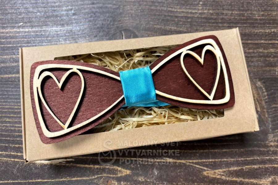 Drevený motýlik v originálnom dizajne. Vhodný ako darček pre výnimočného muža, ktorý má rád eleganciu a štýl. Motýlik je vyrobený z dreva kombináciou viacerých techník. Je ručňe morený, lepený a brúsený.