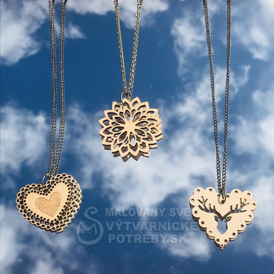 Drevené náhrdelníky z Oravskej laserovne. Náhrdelníky v originálnom dizajne sú vyrobené z dreva technikou vyrezávania laserom. Prípadné farebné prevedenia náhrdelníkov sú ručne maľované.