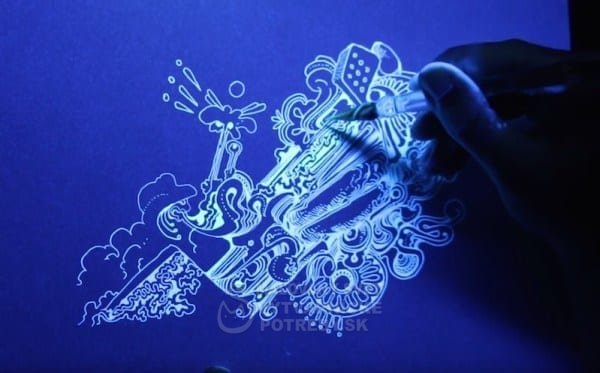 Tuš je pri bežnom svetle neviditeľný ale svieti v tme alebo pri pôsobení UV žiarenia.