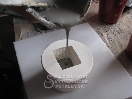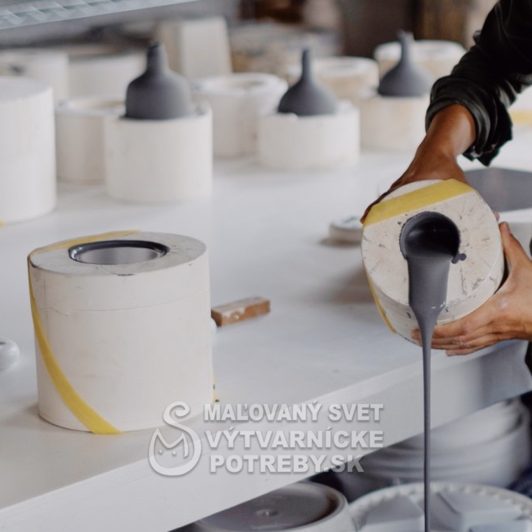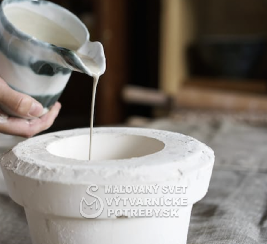 Hmota se pripravuje vymiešaním suchej hmoty s vodou a s dispergátormi (soda + vodne sklo + prípadne AXILAT 32 A) na suspenziu vhodnú pro liatie do sádrových foriem.