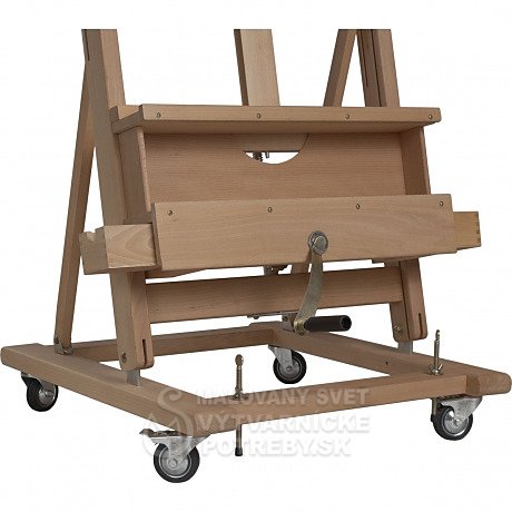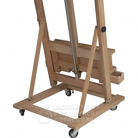 Maliarsky stojan je okrem pohybového mechanizmu vybavený kolieskami a brzdami pre lepšiu manipuláciu.