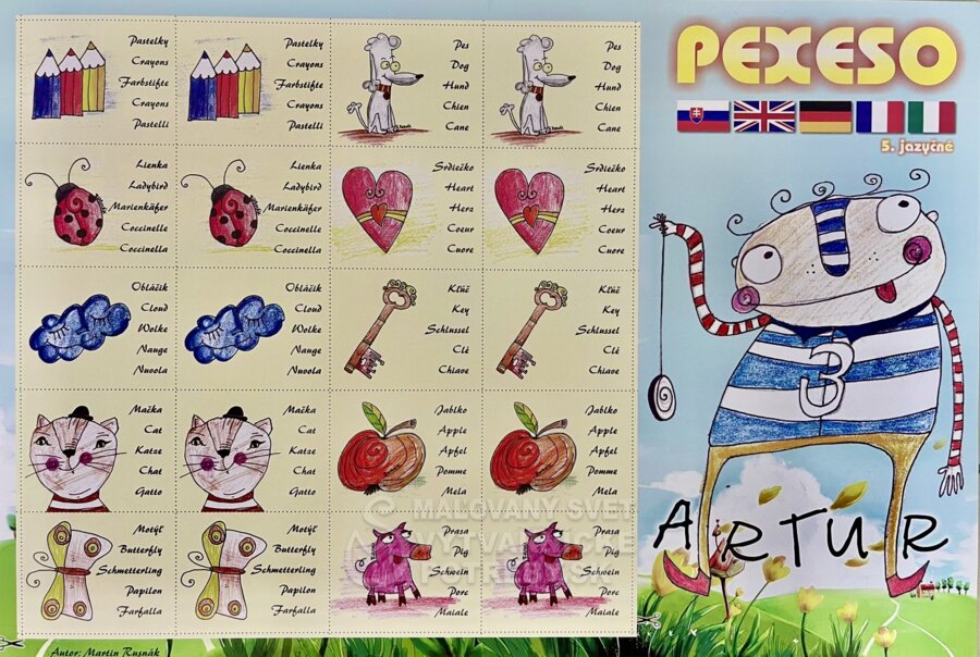 Zábavné 5-jazyčné pexeso pre deti aj dospelých z dielne ilustrátora Martina Rusnáka.!