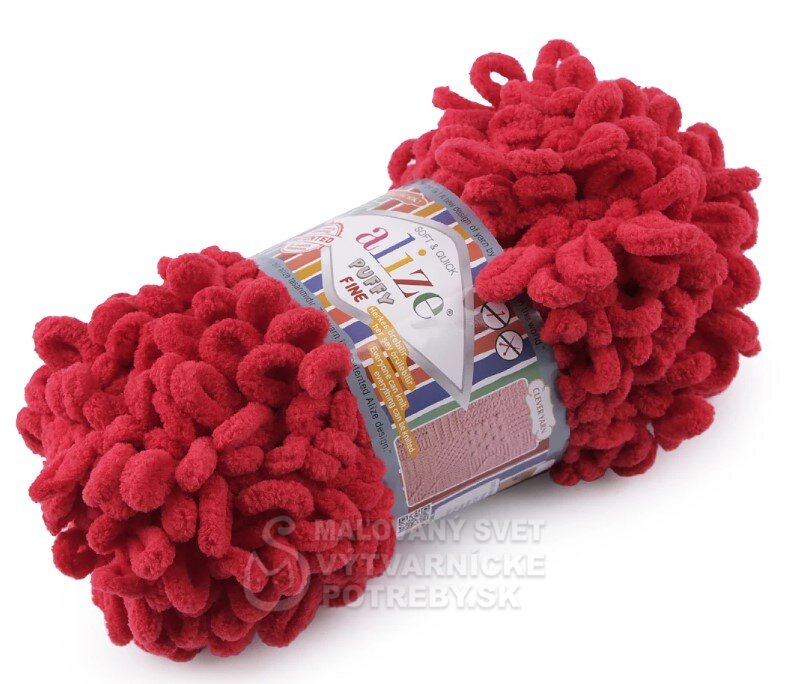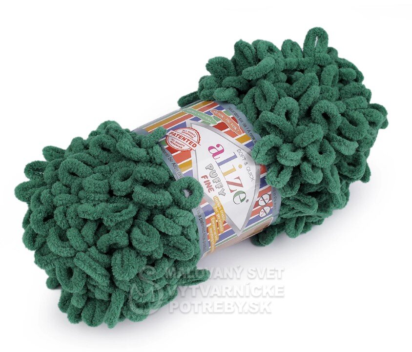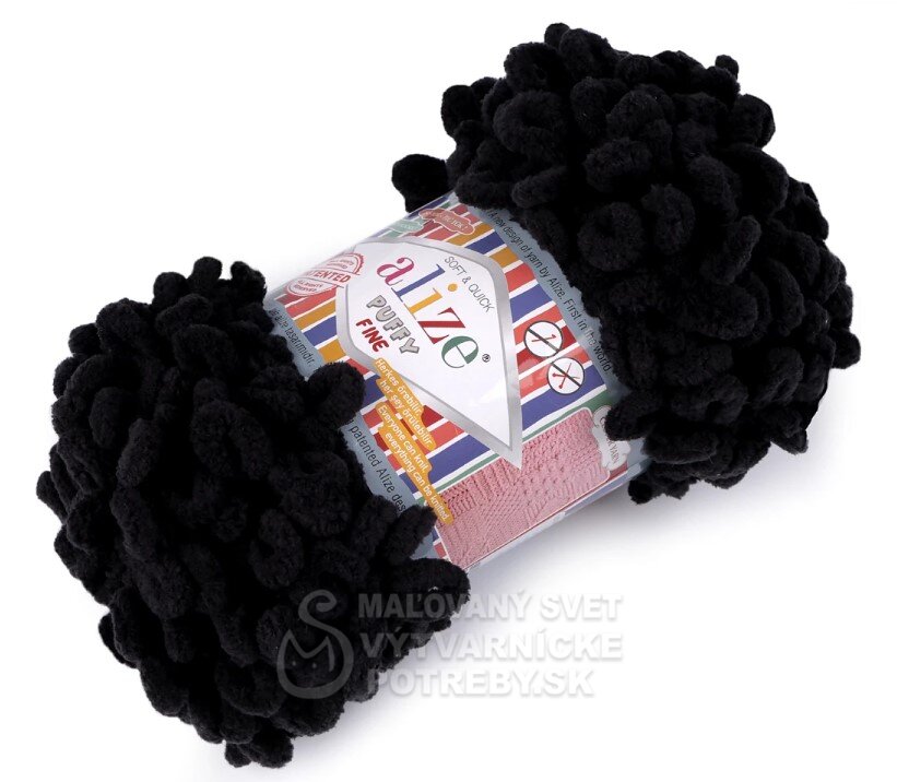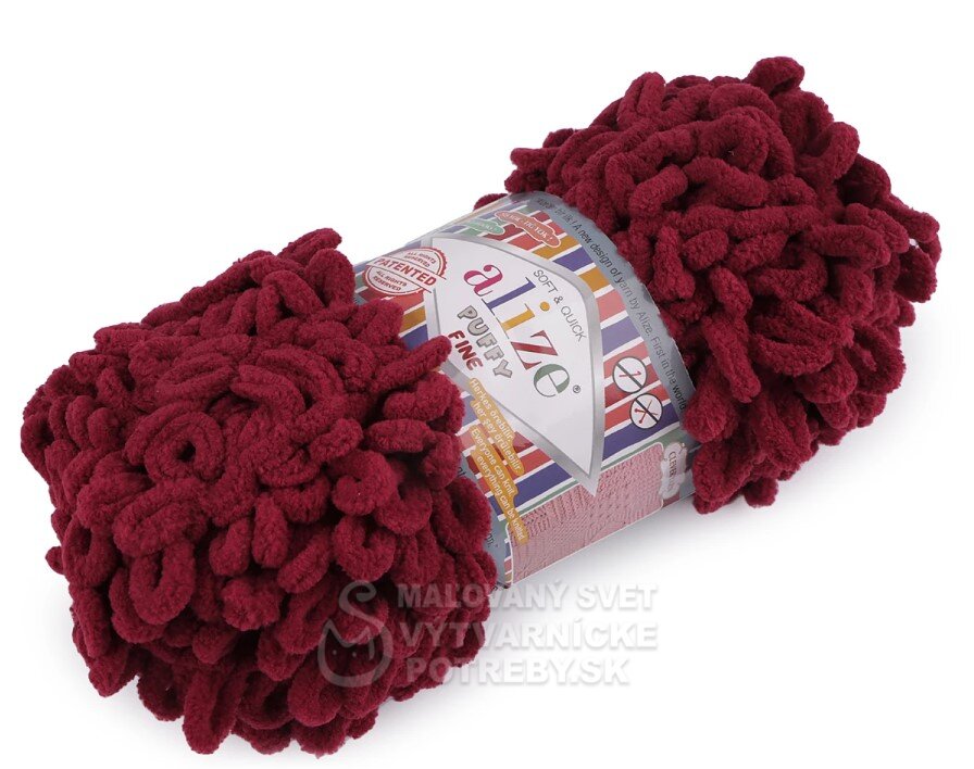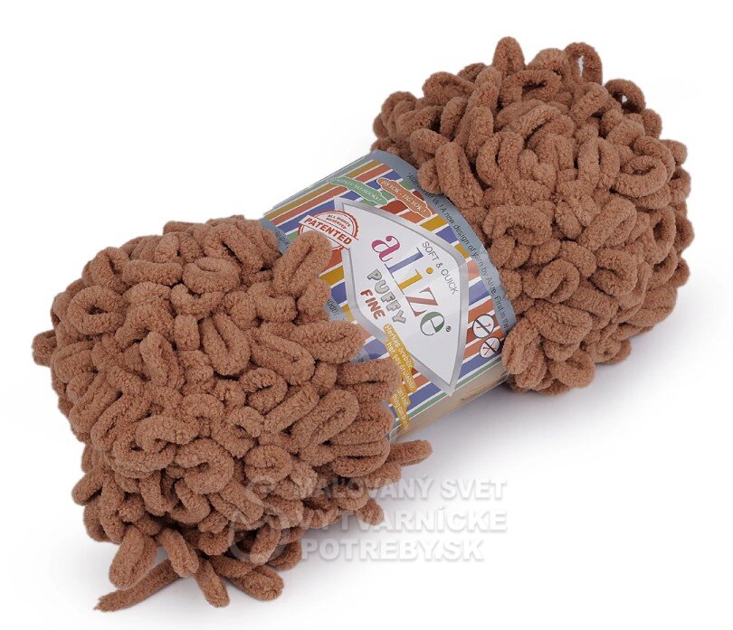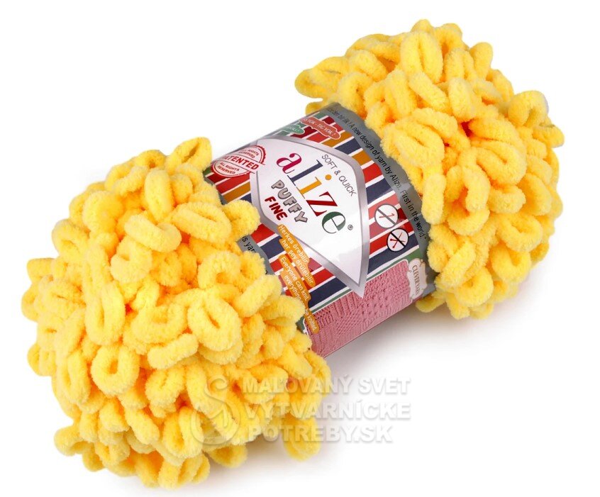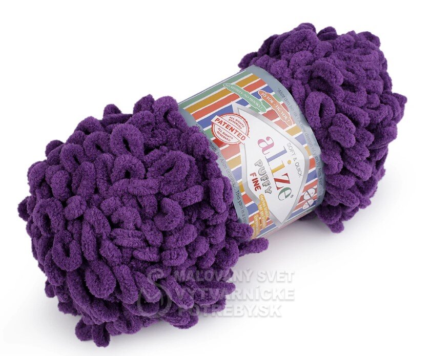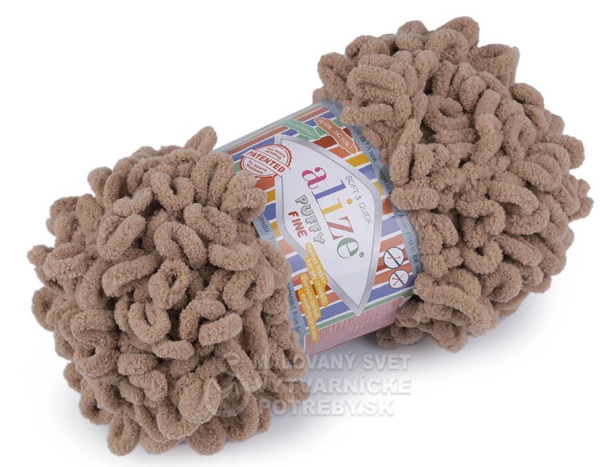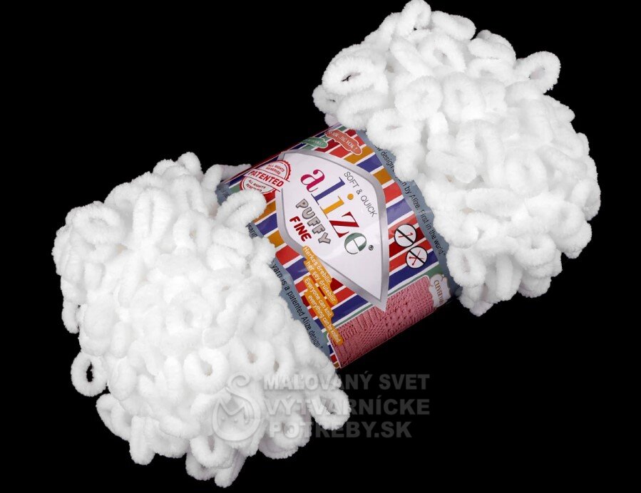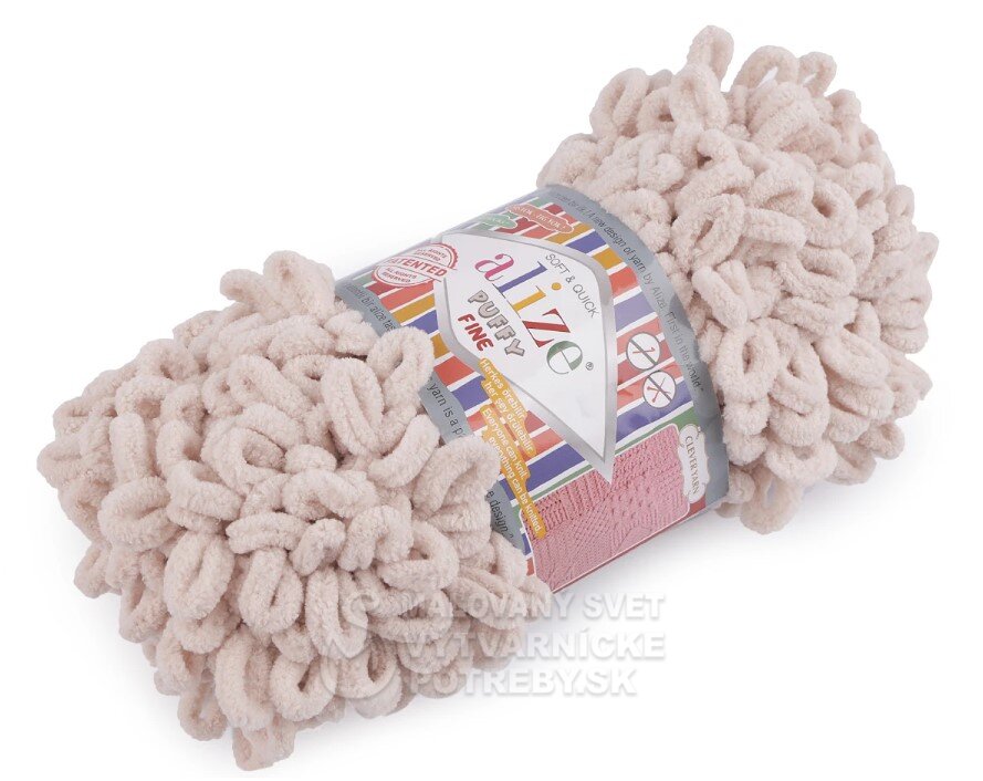 Priadza Alize Puffy Fine je mäkká, chlpatá ženilková priadza s veľkými očkami. Na pletenie nepotrebujete ihlice ani háčik - preplietajú sa jednotlivé očká. Je vhodná na pletenie diek, šálov a pod.