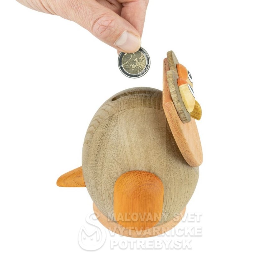 Pokladnička Janoschik z lešteného dubového dreva v podobe sovičky prekvapí svojim originálnym trikom pri vhodení mince. Zdvihnite mačičke chvostík hore a minca spadne dovnútra!