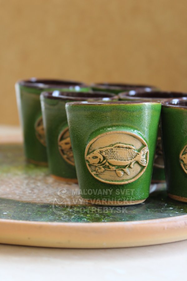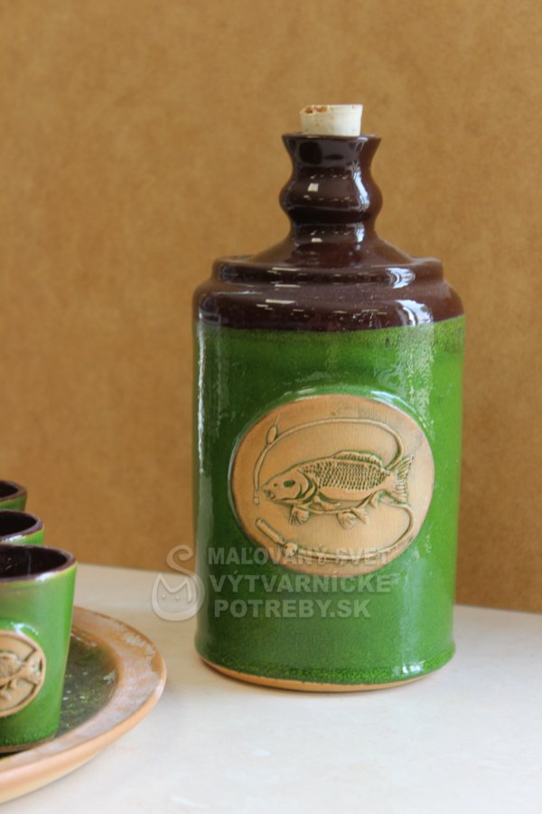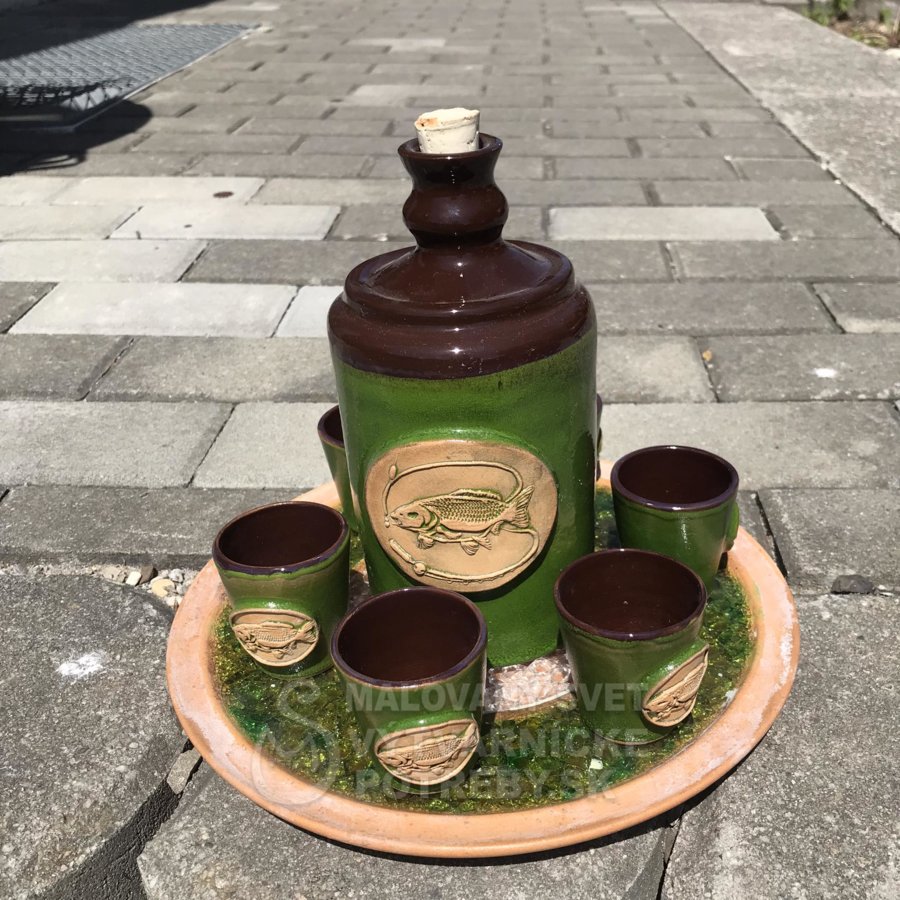 Keramická fľaša a šesť pohárikov nesmie chýbať vo výbave každého rybára.