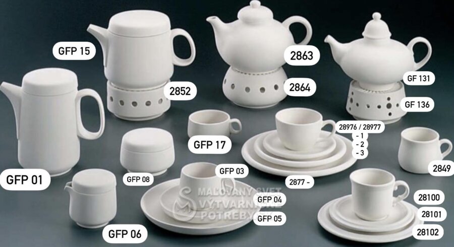 Sadrová forma na odlievanie keramiky, rôzne tvary.