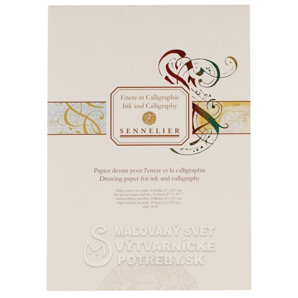 Má luxusný, slonovinovo biely, mäkký pergamenový povrch optimalizovaný pre všetky kaligrafické atramenty.