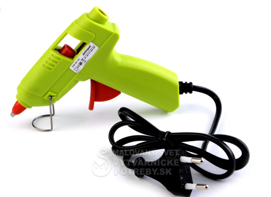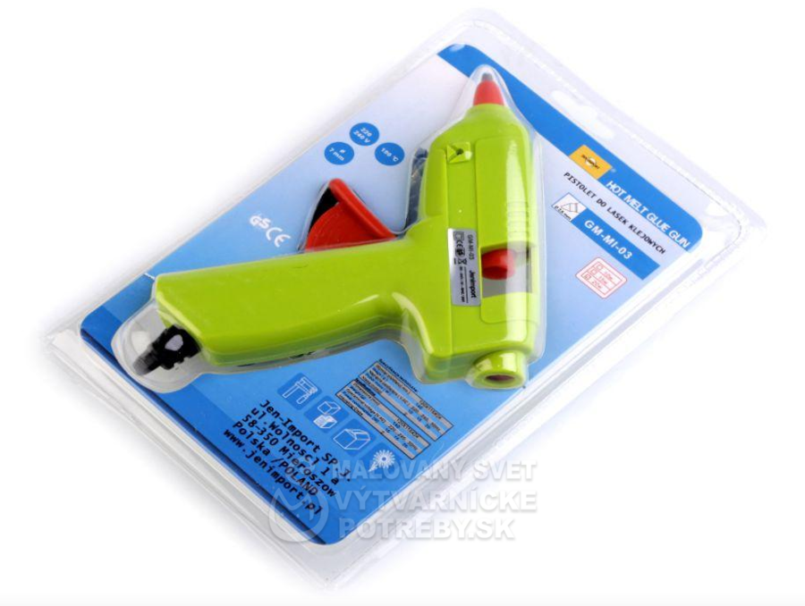 Je vyrobená z plastu a vďaka tomu má nízku hmotnosť. Použijete do nej lepidlo Ø7 mm. Pištoľ je na elektriku. Pri práci zachádzajte s pištoľou opatrne, jej tryska je horúca.