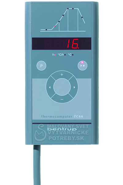 Všetky hodnoty typické keramické vypaľovacie krivky ( doba nábehu, regulované zahriatie v dvoch segmentoch na nastaviteľnú konečnú teplotu, výdrž, regulované ochladzovanie) sú ľubovoľne nastaviteľné. Na základe svojich požiadaviek môžete odpovedajúcim spôsobom prispôsobiť a do pamäti regulátora uložiť až šesť programov.