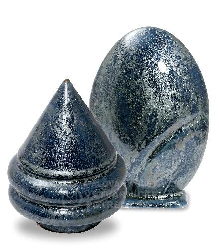 Lesklá, strieborno-šedo-modrá metalická farba. Glazúra je v práškovej forme, je nutné ju miešať.