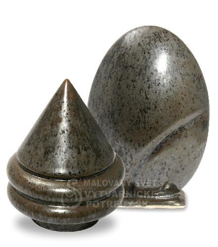 Saténová hnedá s lesklými výlučkami. Glazúra je v práškovej forme, je nutné ju miešať.