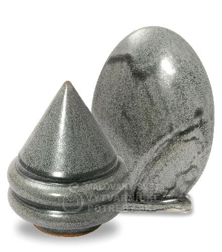 Polomatná až matná strieborno-sivá s tmavými škvrnami a jemným leskom. Glazúra je v práškovej forme, je nutné ju miešať.