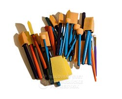 Sada štetcov obsahujúca 25 tupovacích štetcov rôznych rozmerov a tvarov.