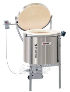 Vo všetkých modeloch KITTEC X-LINE na 230 a 400 V je využitie energie vďaka konštrukcii pece vysoko efektívne. Vďaka kruhovému tvaru je únik energie na povrch znížený na minimum. Regulovateľný prívod vzduchu v dne pece slúži k zlepšeniu atmofséry pece. Prednosťou trojfázových modelov na 400V je to, že vďaka kratšej dobe ohrevu umožňujú skrátiť celkovú dobu výpalu. Veľkosť pece sa mení-pracovná výška 93cm zostáva.
